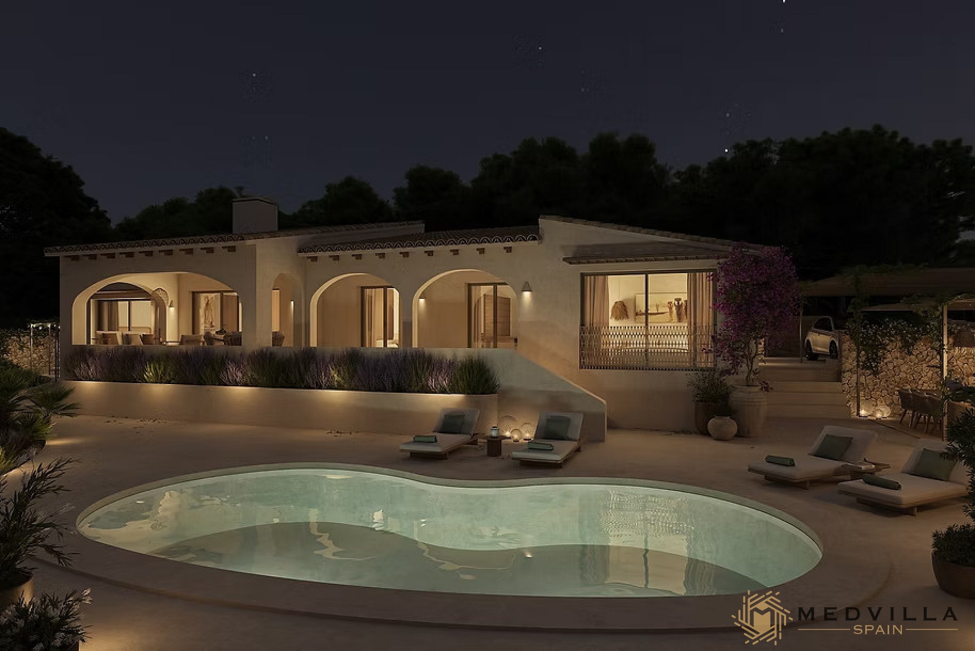 - Villa livré avec 3 Chambres et 3 Salles de bains, privé piscine et place de parking sur son propre terrain, situé à Benissa à la Costa Blanca nord en Espagne.