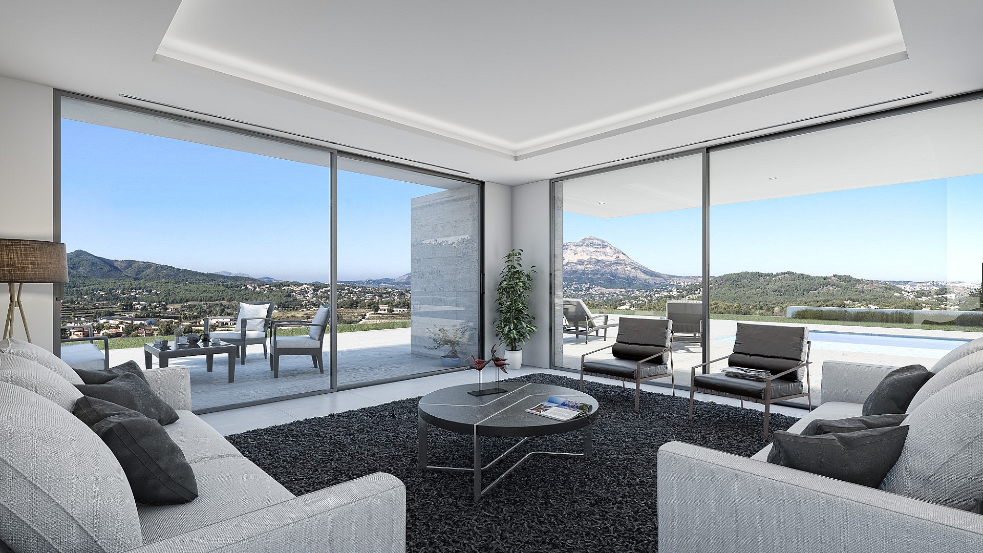 Cette magnifique villa a été conçue pour un terrain exclusif de 1000 m², bénéficiant d'un emplacement privilégié dans l'urbanisation Monte Olimpo, à seulement 8 minutes en voiture de la plage, du centre-ville et des commerces de Jávea, station balnéaire d'Alicante.
