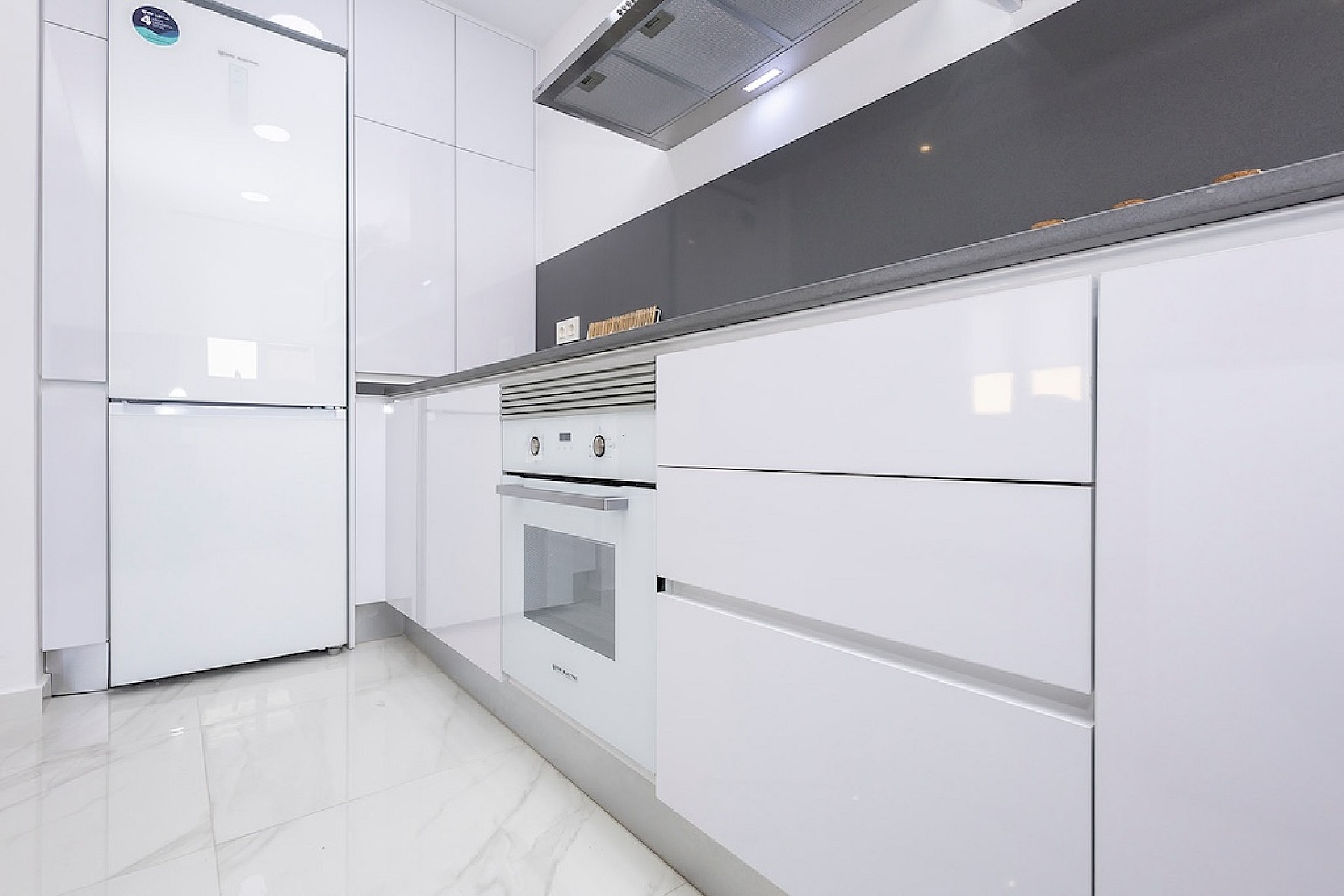 Le prix comprend les extras suivants en standard : table de cuisson et hotte aspirante, armoires encastrées, pré-installation de la clima, etc…
