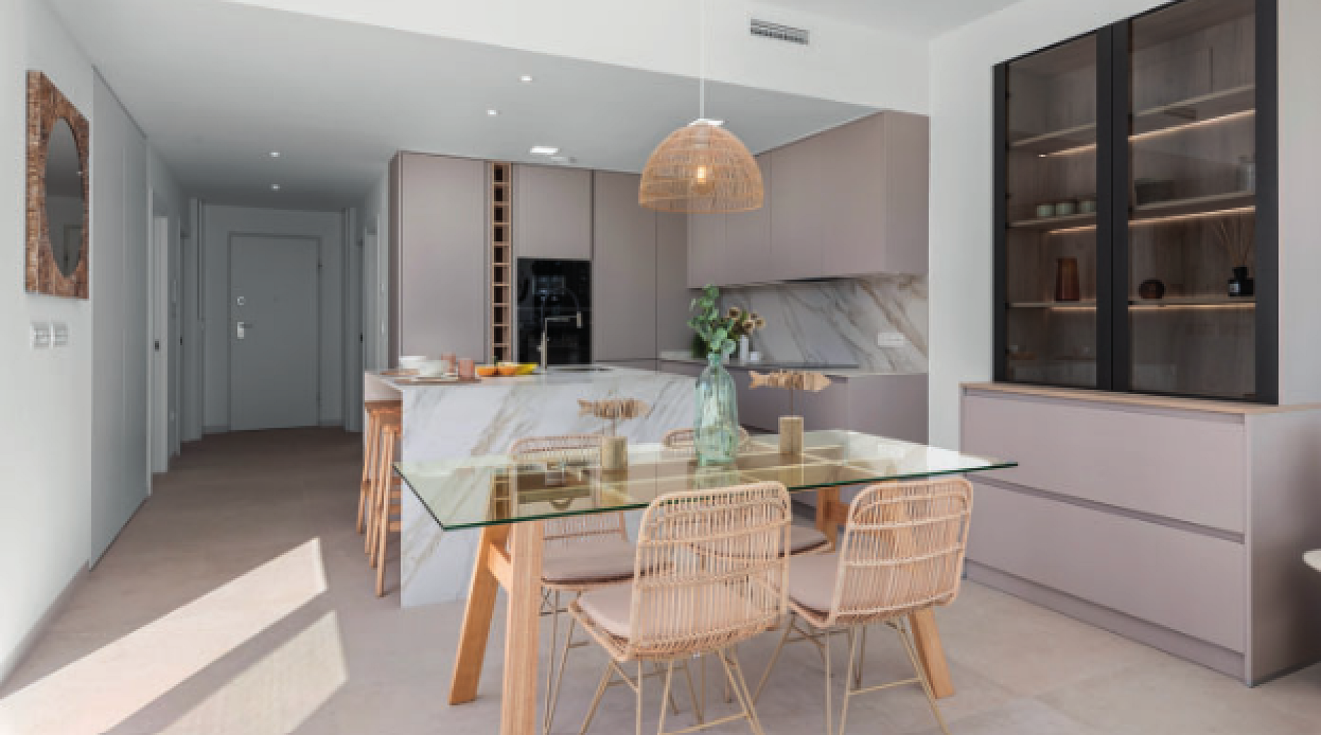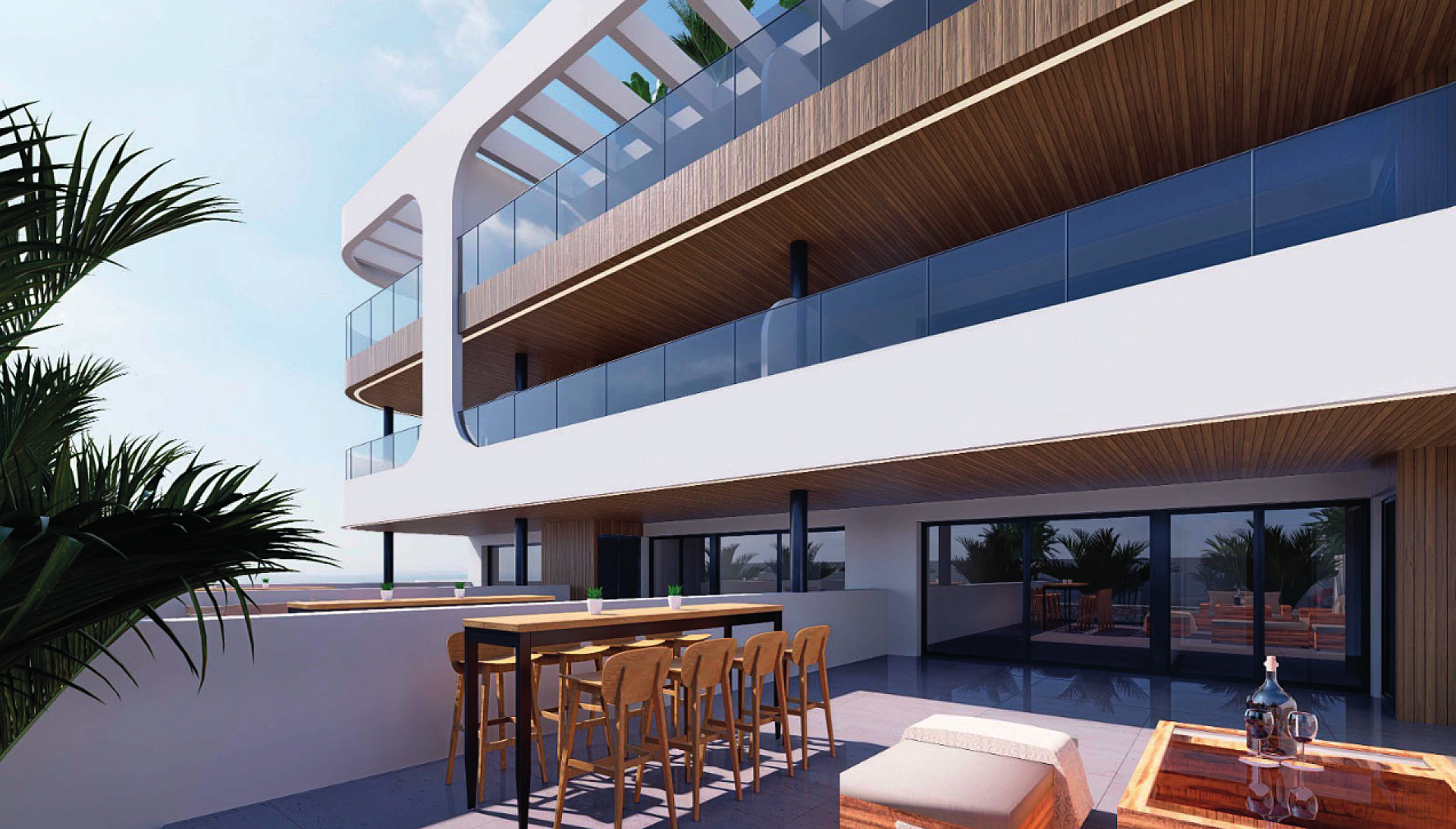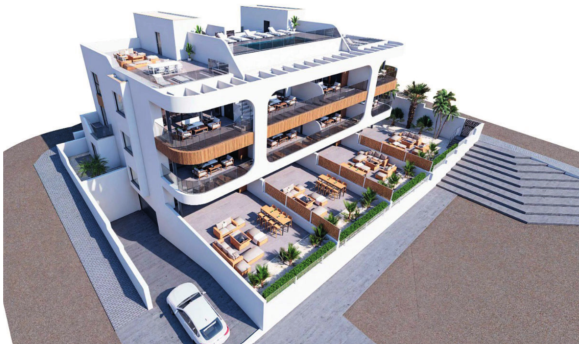 Benisol - Appartements - terrasse sur le toit livré avec 3 Chambres et 2 Salles de bains, commun piscine et place de parking souterrain et débarras, situé à Benijòfar à la Costa Blanca sud en Espagne.