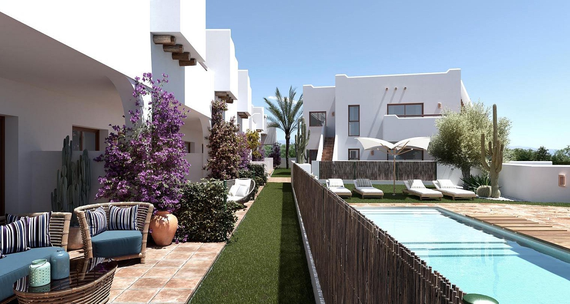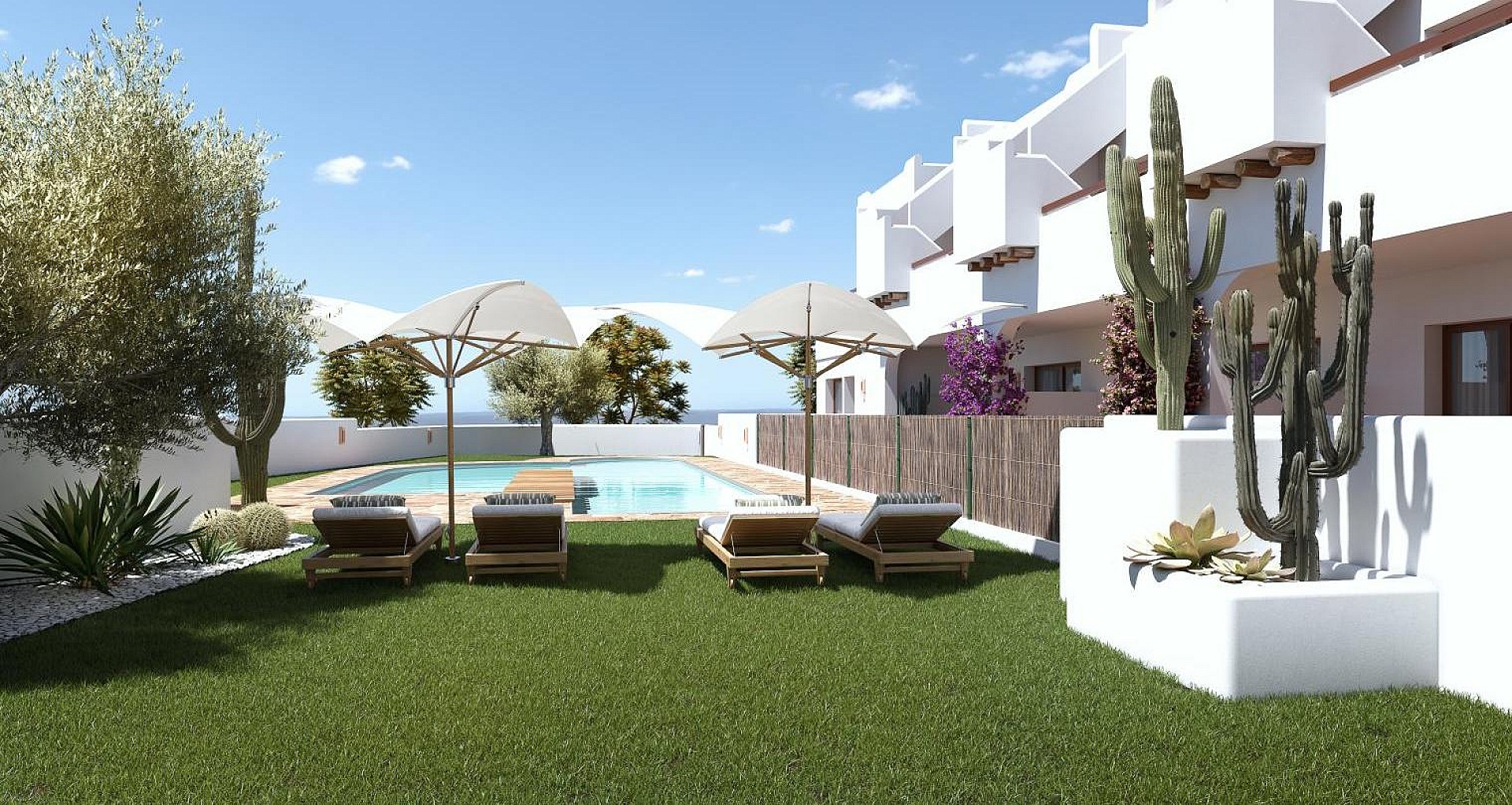 Complexe à petite échelle avec 16 bungalows et un duplex d'angle. L'espace commun offre une piscine et des espaces verts, parfaitement orientés au sud-est pour un ensoleillement maximum.