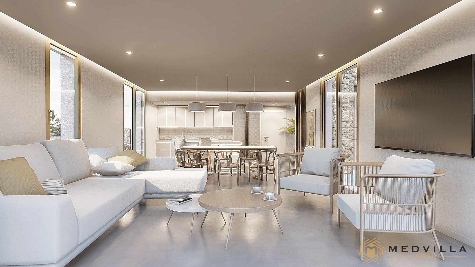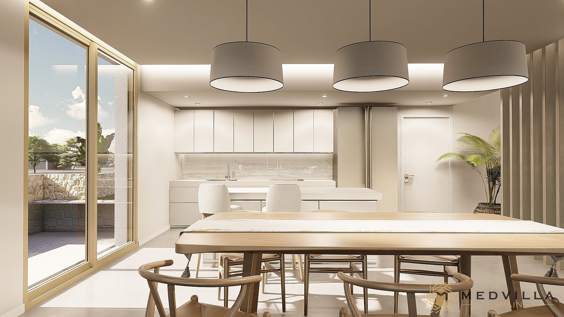 Ces deux villas de luxe exclusives sont conçues avec un espace ouvert et disposent d'une cuisine moderne parfaitement intégrée au salon, de grandes fenêtres et de portes-fenêtres coulissantes pour une aération et une luminosité naturelles abondantes, ainsi que d'un accès direct à une terrasse et une piscine privées, véritable oasis de détente en plein air sous le soleil méditerranéen.