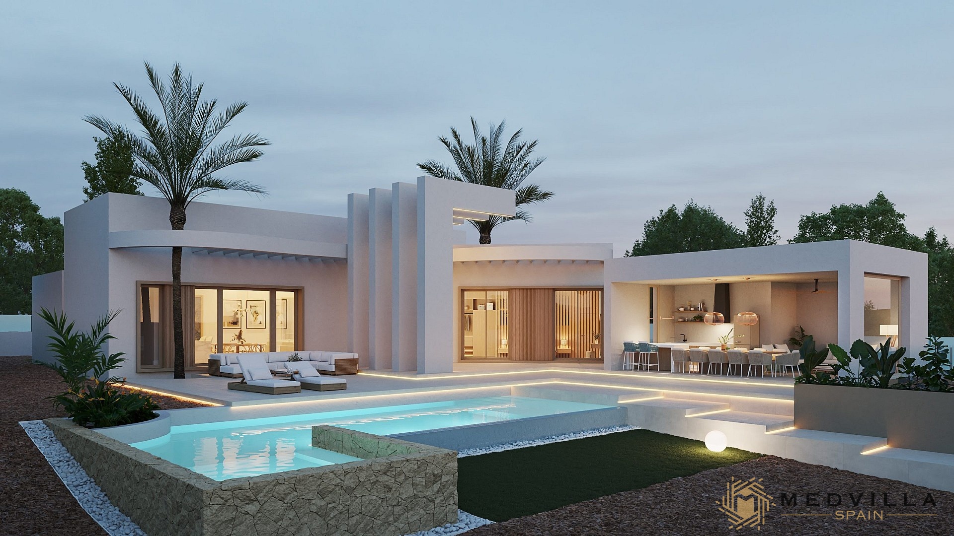 Le prix comprend les extras suivants en standard : installation complète de climatisation, cuisine finie, tous les appareils de cuisine, volets électriques, chauffage par le sol, etc…