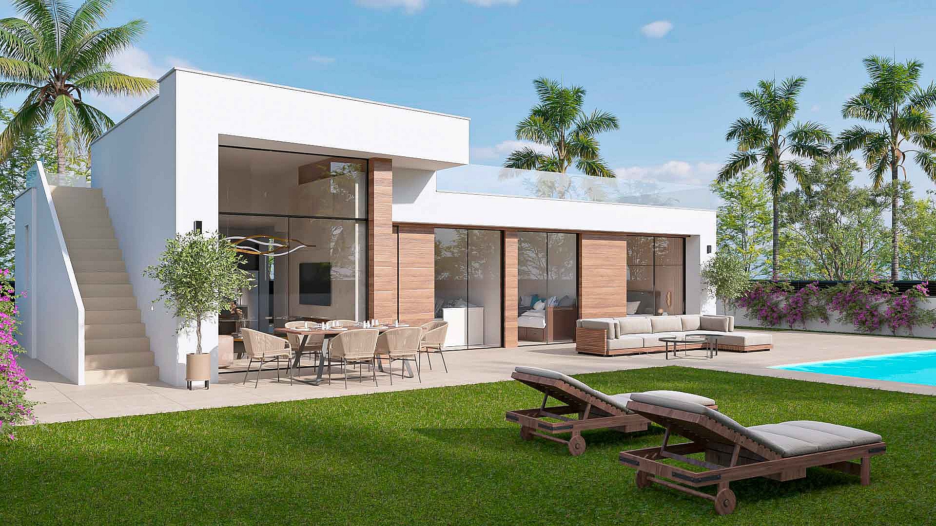 Residencial Oriol - Villa livré avec 2 Chambres et 2 Salles de bains, optionnel piscine et place de parking sur son propre terrain, situé à Condado de Alhama à la Costa Cálida (Murcia) en Espagne.
