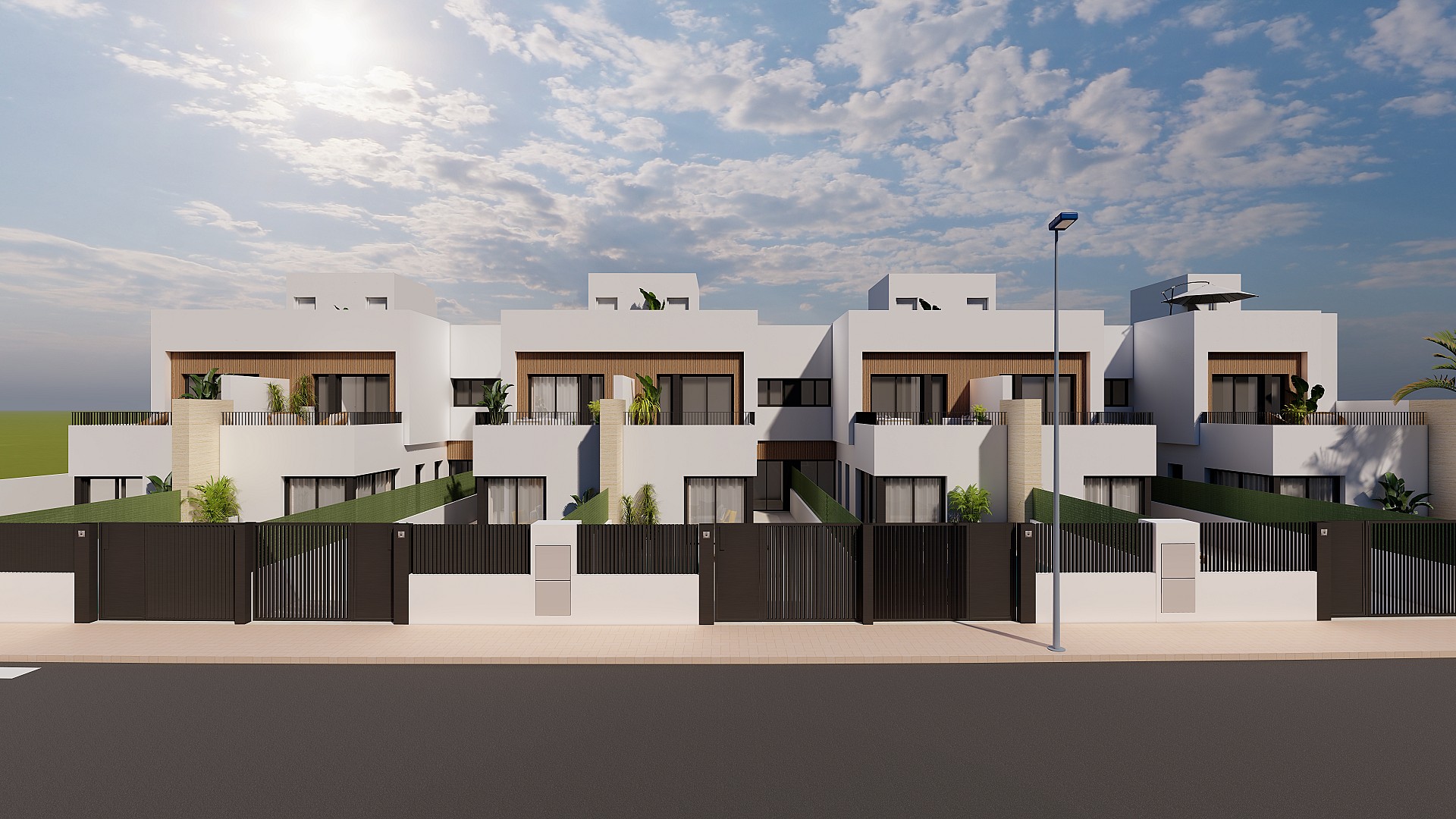 Rosa Morada - Maisonettes livré avec 3 Chambres et 3 Salles de bains, privé piscine et place de parking sur son propre terrain, situé à Santiago de la Ribera à la Costa Cálida (Murcia) en Espagne.