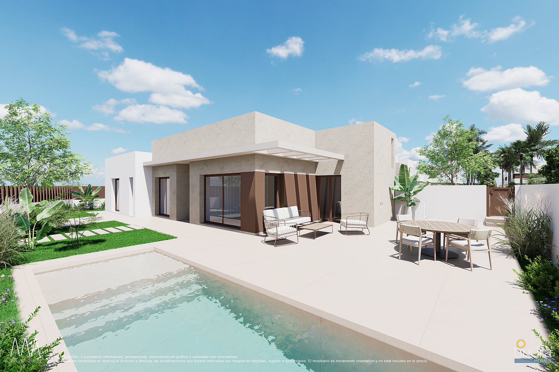 Costa Serena - Villa livré avec 3 Chambres et 2 Salles de bains, privé piscine et place de parking sur son propre terrain, situé à Los Alcazares à la Costa Cálida (Murcia) en Espagne.
