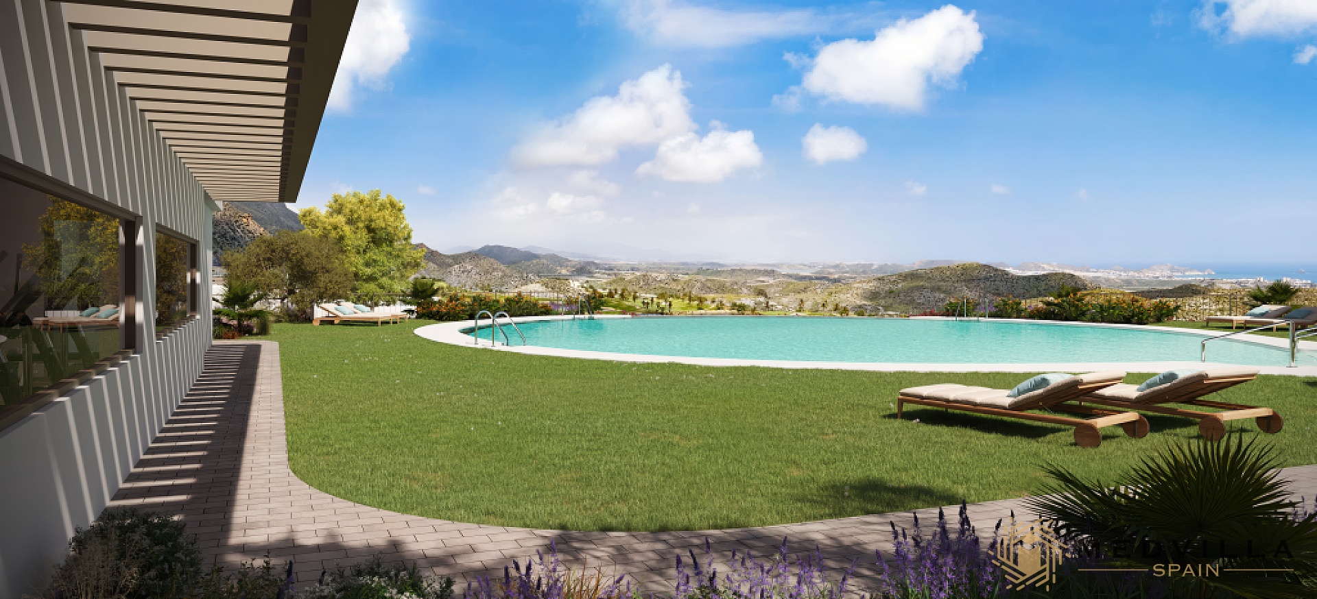 Swing Golf - Appartement - jardin livré avec 2 Chambres et 2 Salles de bains, commun piscine et place de parking avec rangement souterrain, situé à San Juan de los Terreros à la Costa de Almería en Espagne.