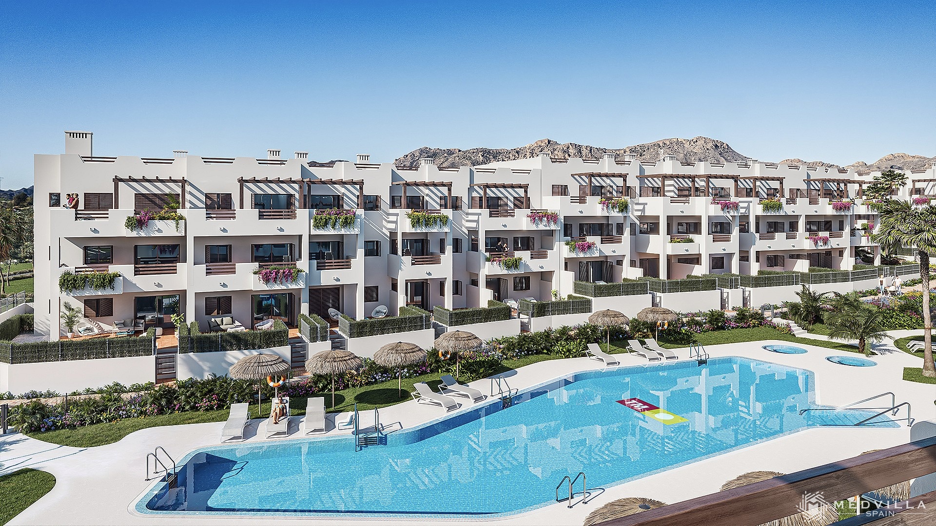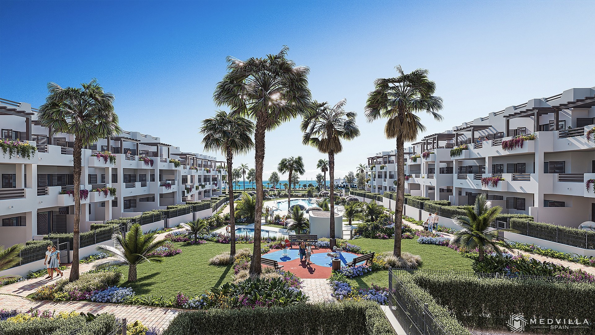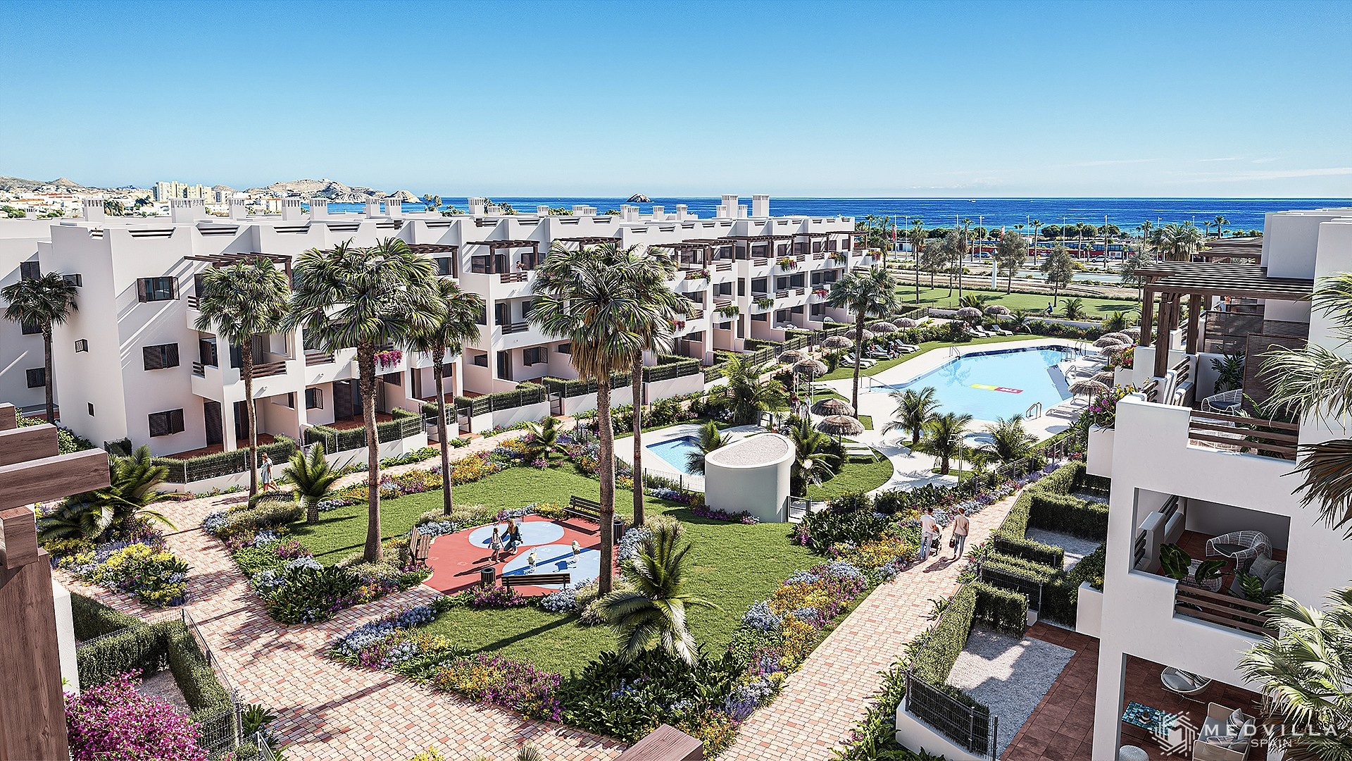 Mar de Pulpi phase 9 - Appartement - terrasse livré avec 2 Chambres et 2 Salles de bains, commun piscine et parking souterrain, situé à Mar de Pulpi à la Costa de Almería en Espagne.