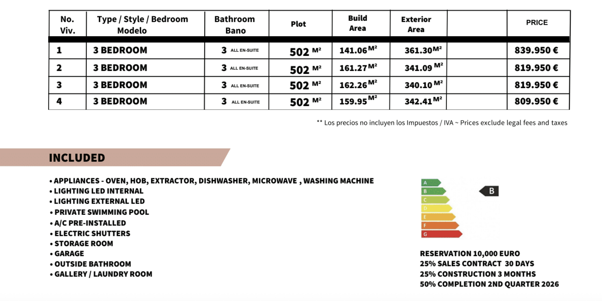 - Villa livré avec 3 Chambres et 4 Salles de bains: À partir de 809,000€