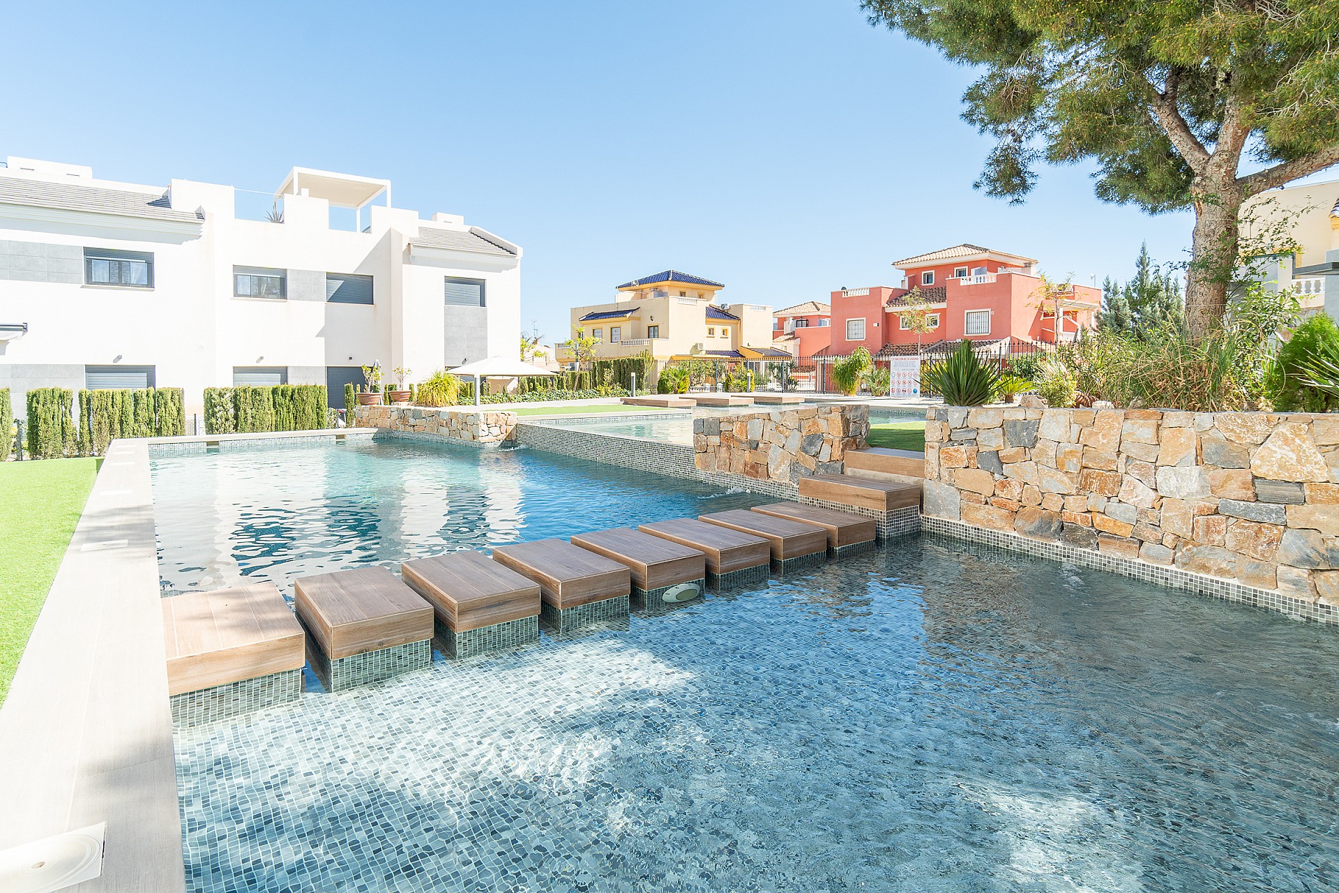 Le complexe résidentiel Balcón de la Laguna se compose de bungalows. Parmi les options, vous pouvez choisir entre un rez-de-chaussée avec 3 chambres et 2 salles de bains avec terrasse et jardin, et un étage supérieur avec 2 chambres et 2 salles de bains avec terrasse et solarium. Les maisons sont équipées d'une cuisine équipée et d'appareils encastrés.