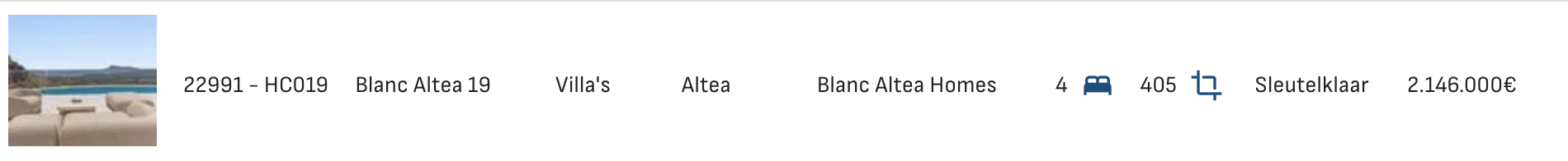 Nous proposons le projet au nom du développeur du projet Blanc Altea Homes . Si vous voyez un prix moins cher, l'autre collègue agent immobilier n'a pas encore ajusté ses prix.