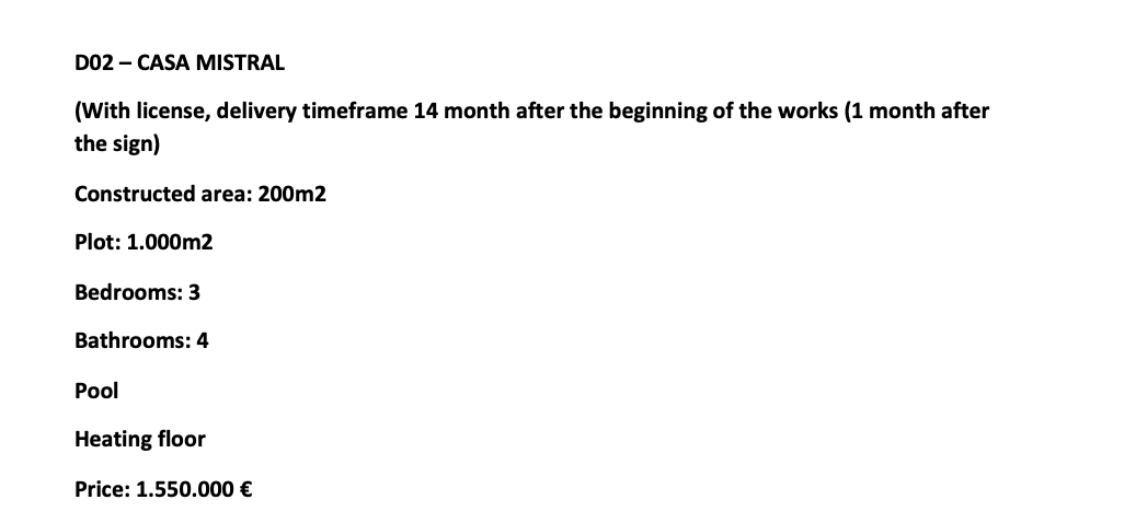 | Villa | 3 | 4 | 200 m² | 1000 m² | 1,550,000€ | Plus d'infos... |