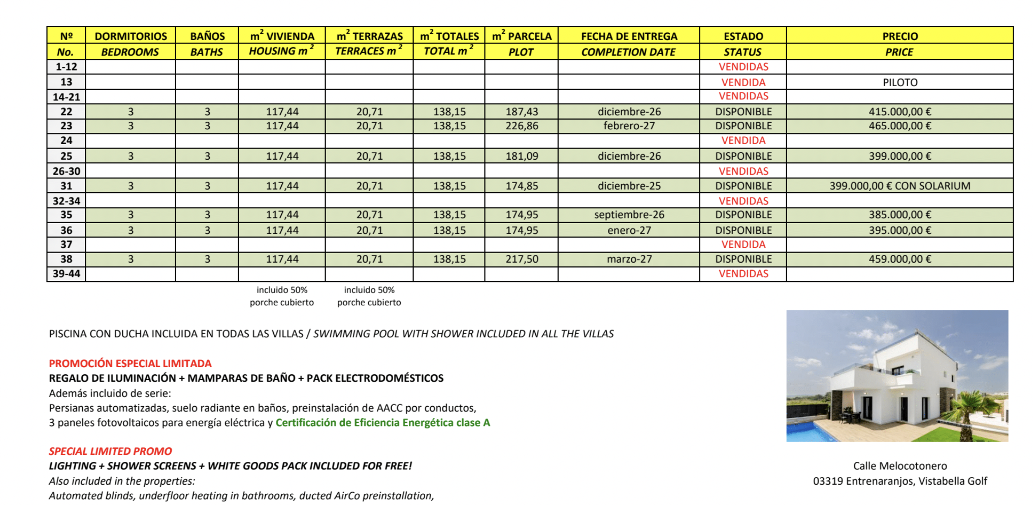 Inclus dans le projet Casas Blancas de Vistabella