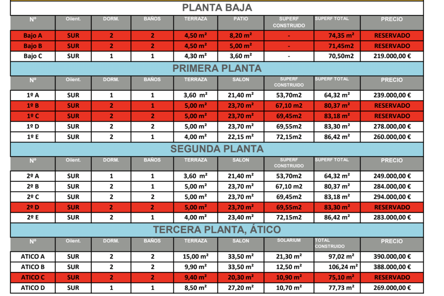 | Appartements - terrasse sur le toit | 1 | 1 | 77 m² | 9 m² | 11 m² | 269,000€ | Plus d'infos... |