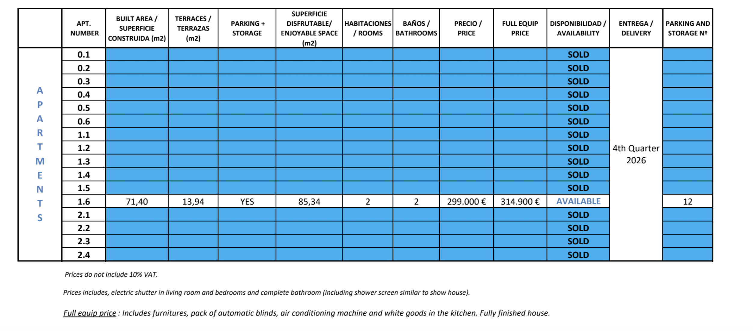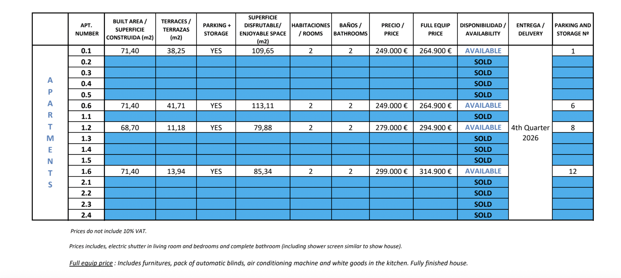 Les appartements et villas offrent une vue imprenable sur la mer et le golf. Avec des finitions de première qualité, ces maisons disposent de 2 ou 3 chambres et 2 salles de bains, d'un salon-salle à manger avec cuisine ouverte, ainsi que d'un garage et débarras et d'une piscine commune.