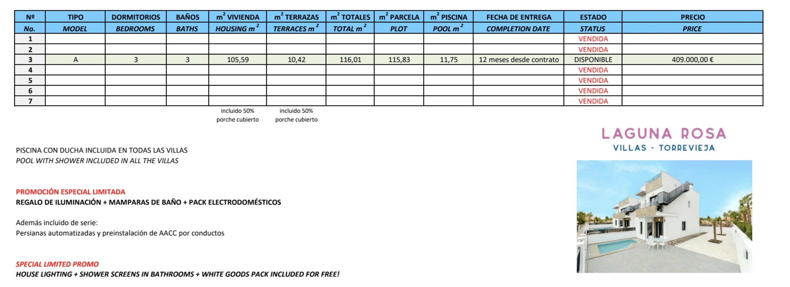 Inclus dans le projet Laguna Rosa Villas