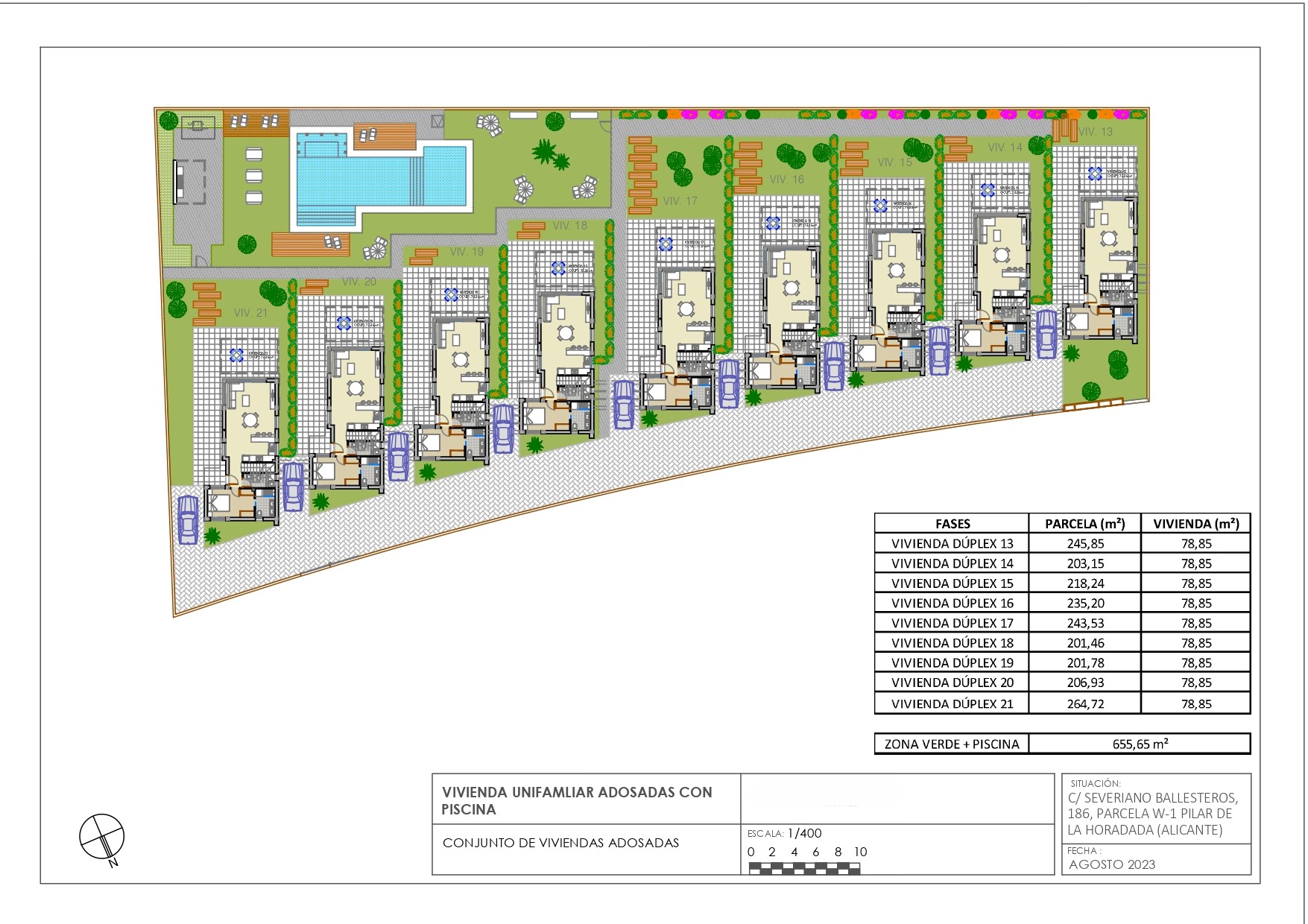- Les neuf villas jumelées auront 3 chambres et 3 salles de bains, un jardin privé, une terrasse ensoleillée et un parking privé, ainsi qu'un espace commun pour les propriétaires de la villa avec une piscine partagée, un jacuzzi, un espace barbecue et une salle de sport.