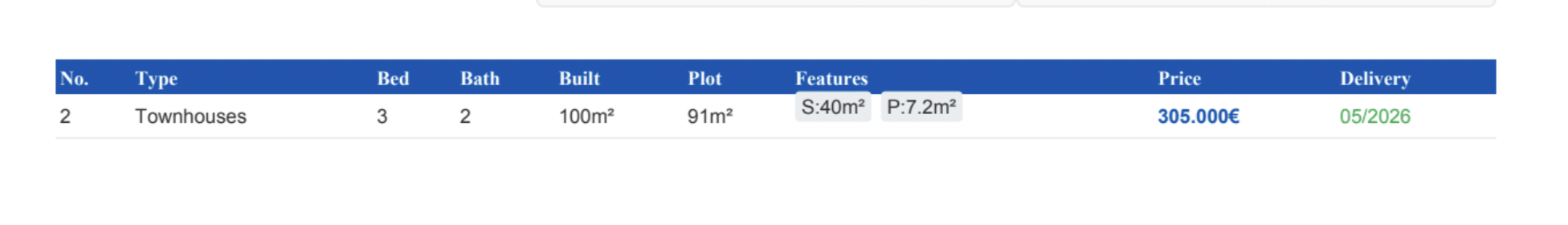 | Villa | 3 | 2 | 100 m² | 40 m² | 91 m² | 305,000€ | Plus d'infos... |