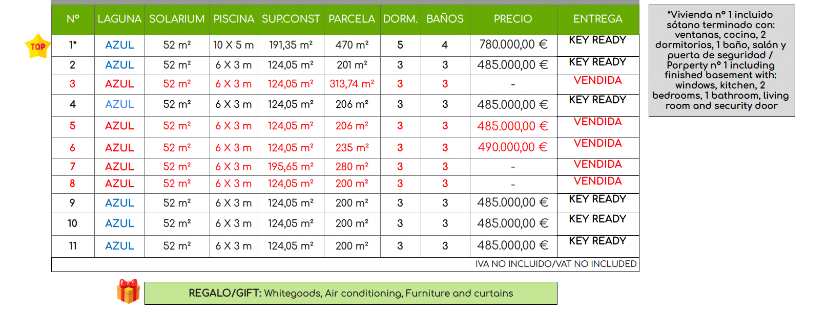 Cette nouvelle résidence se compose de 11 villas indépendantes avec 3 chambres, 3 salles de bain, un spacieux séjour avec cuisine ouverte, plusieurs terrasses et un solarium sur deux étages. Toutes les villas sont construites sur des parcelles d'au moins 206 m2 et disposent d'un grand jardin paysager avec piscine privée et d'une place de parking pour la voiture.