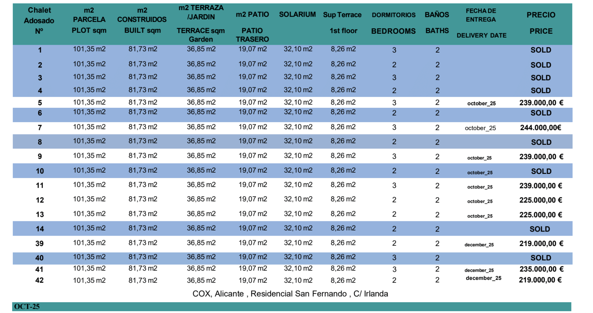 Chaque propriété est dotée d'un jardin paysager, d'un éclairage LED, de volets électriques, d'une pré-installation de panneaux solaires, d'armoires encastrées, d'une porte blindée, d'une cuisine entièrement équipée avec plans de travail Silestone et bien plus encore.