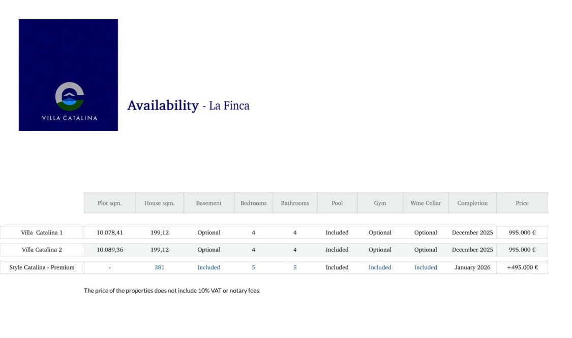La villa standard Catalina dispose de quatre chambres spacieuses et a 199 m² de surface construite, tandis que l'option villa Catalina Premium de cinq chambres offre jusqu'à 381 m², avec un espace généreux, de la lumière naturelle et le confort nécessaire à la vie de famille et au divertissement des invités.