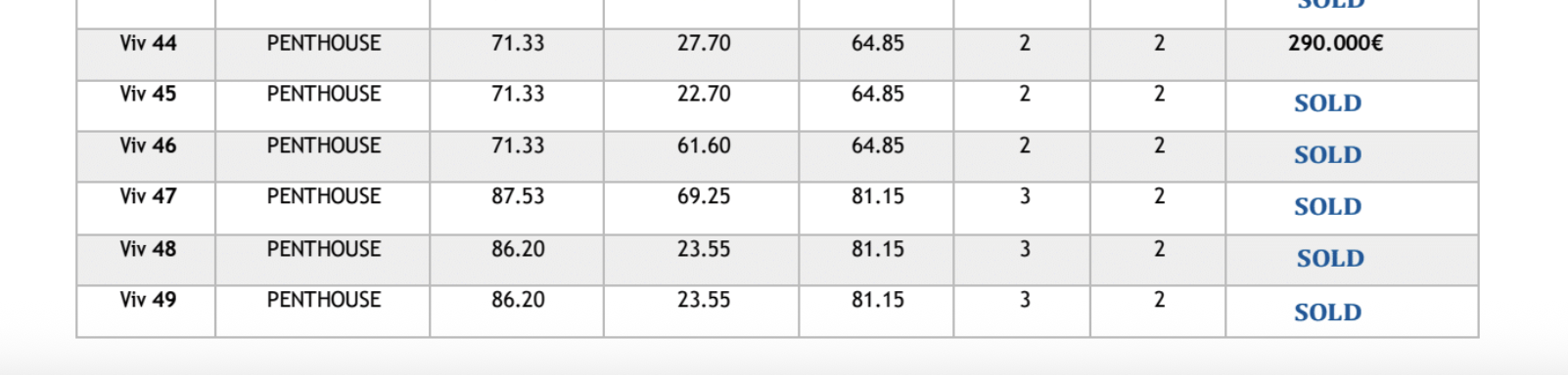 | Appartements - terrasse sur le toit | 2 | 2 | 71 m² | 23 m² | 65 m² | 290,000€ | Plus d'infos... |