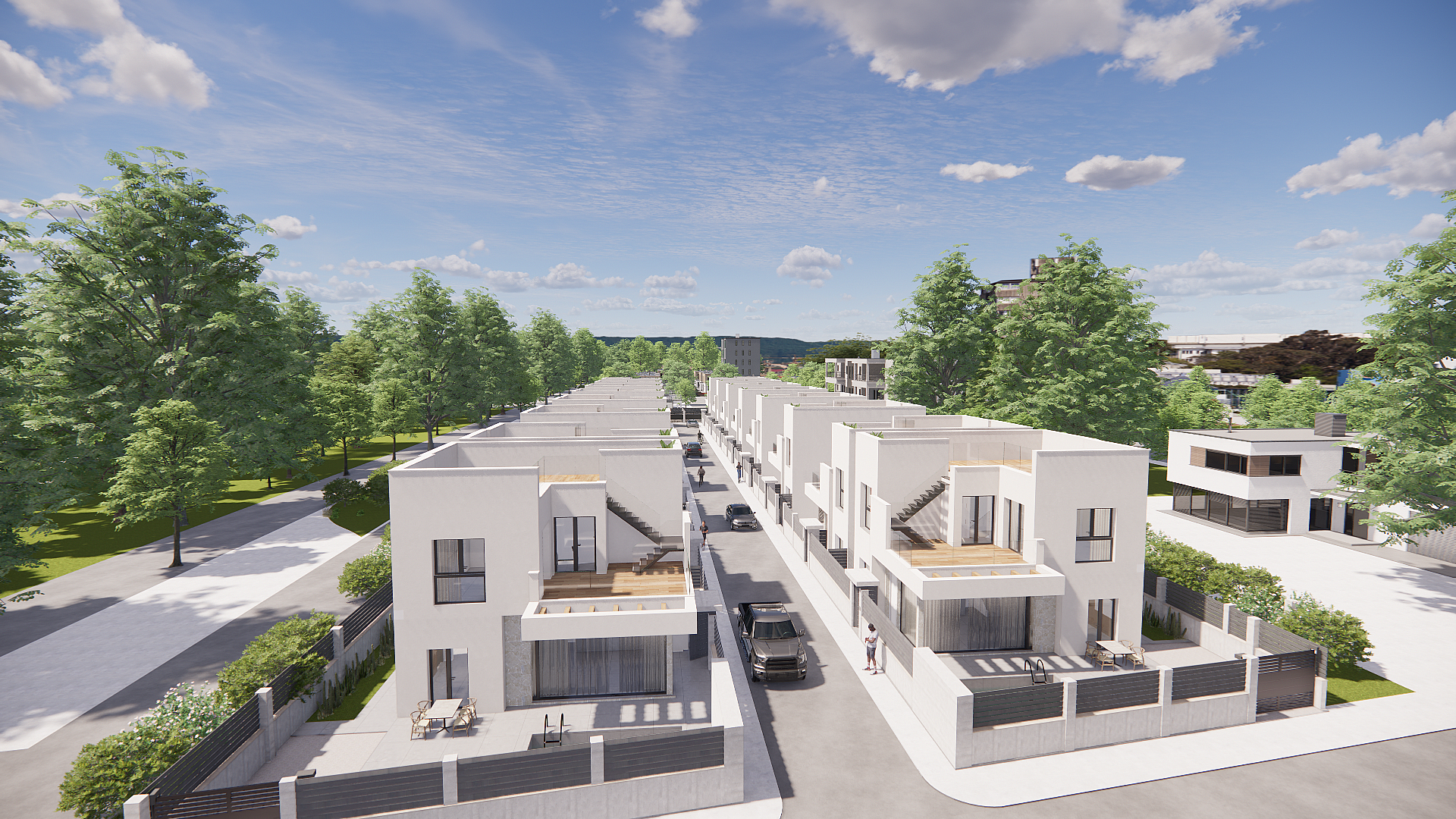 Chaque villa offre 110 m² de surface habitable, répartis sur deux niveaux et conçus pour optimiser la lumière naturelle. Les parcelles, à partir de 185 m², offrent de généreux espaces extérieurs avec piscine privée, parfaits pour se détendre ou recevoir. Le rez-de-chaussée comprend un espace de vie ouvert avec cuisine intégrée, une chambre, une salle de bains et une buanderie, tandis que l'étage supérieur propose deux suites parentales et un accès à une terrasse privée de 17 m².